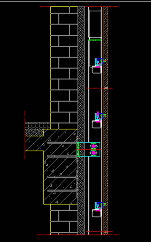 此结构是在石板上下端面开设通长槽口,采用铝合金通长勾板固定,其特点是受力合理,可靠性高,可适用于高层建筑。