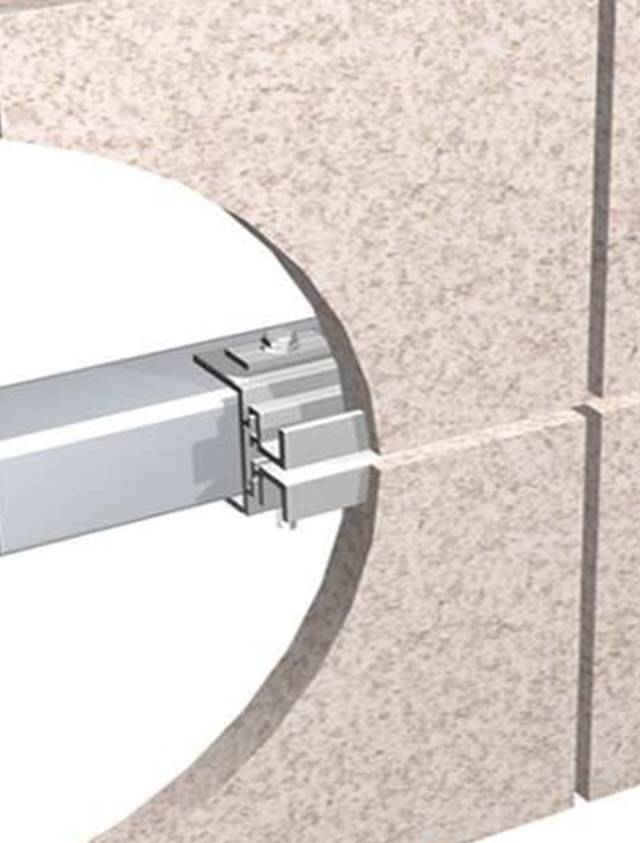 3.如果石材存在厚度误差,使用齐平式锚栓时,其支撑龙骨体系须允许在水平方向有一定的调节量