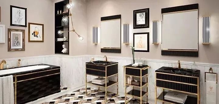 融合黄金、青铜、大理石、皮革、天鹅绒、珍贵木材等材料,重新定义豪华卫浴间的概念。