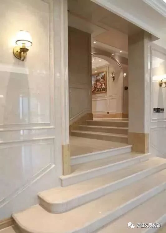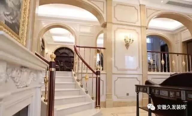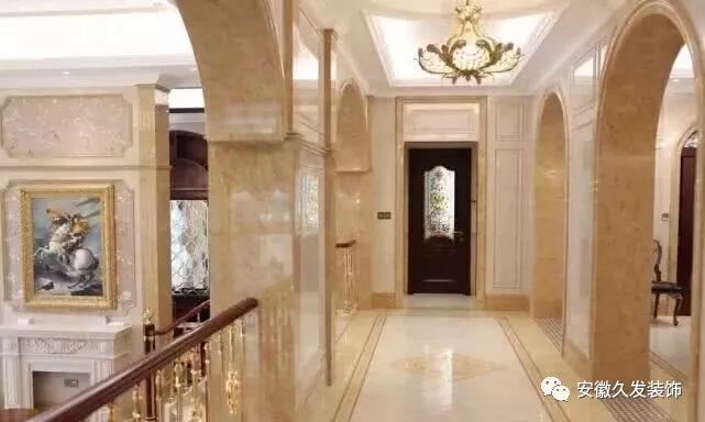 精心打造空间线轴,米黄色石材营造空间氛围,石材拼花富有特色,运用了欧式石材细节考究,制作精美,线条细致,赋予了建筑高贵典雅,浪漫尊贵扑面而来。