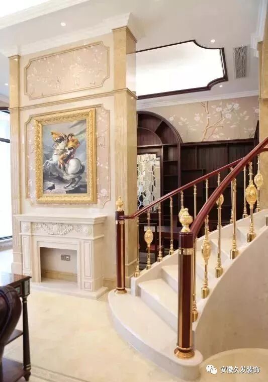 米黄色大理石,富有灵魂的拼花,大理石壁炉精致华丽,带有现代与传统的搭配,强调空间的完整性,体现主人注重生活品质和细节。正是欧式石材装饰的显著特点。
