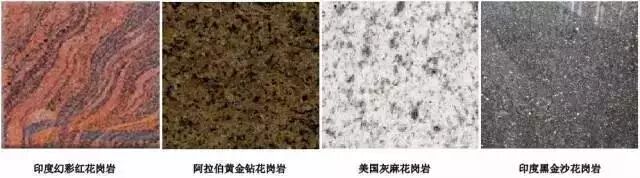 印度:印度黑金沙、克什米尔金、幻彩红、印度红、印度金丝麻等;
