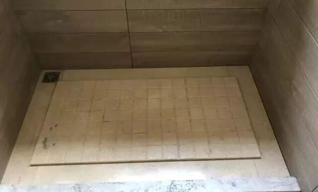 拉槽其实很简单,就是把淋浴的区域中间利用石材,垫高拉出槽,石材周边稍微往四周倾斜低一点,就形成了拉槽板和导水槽,直接能加速地面排水不会造成积水的现象。