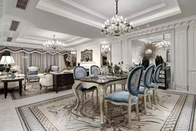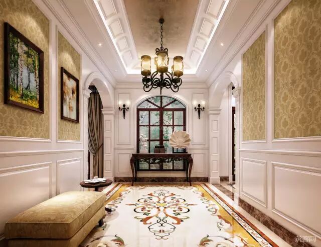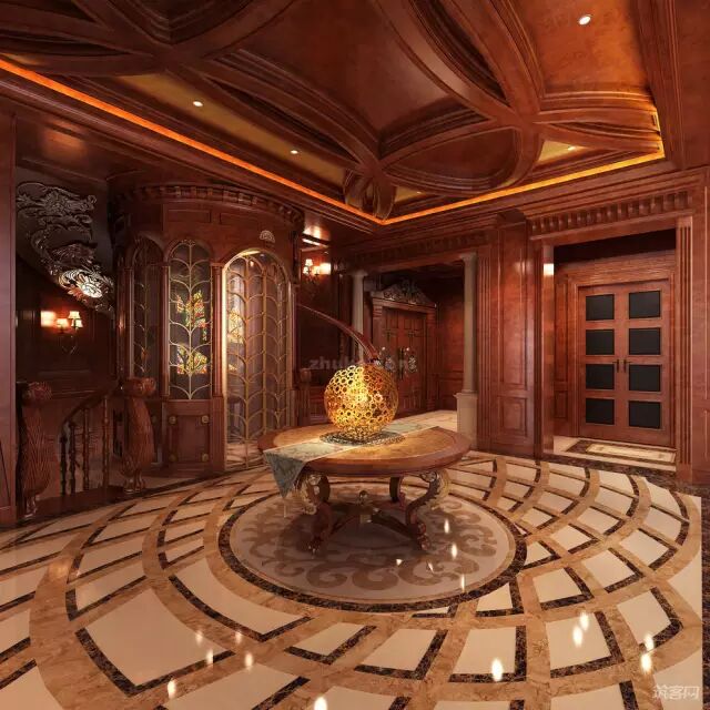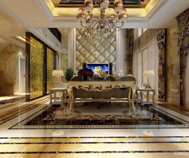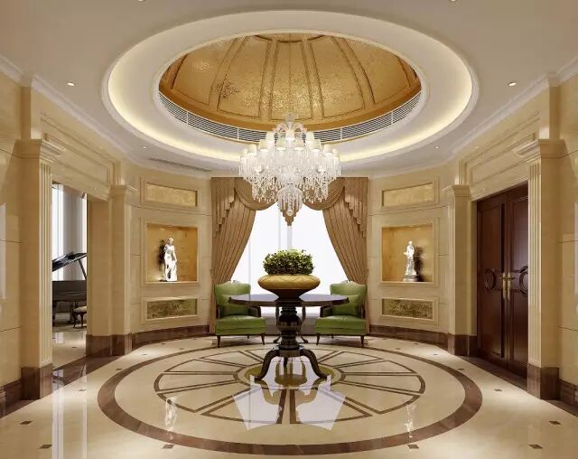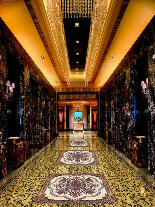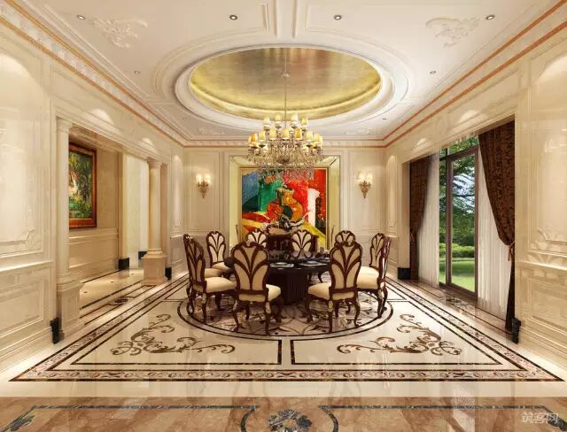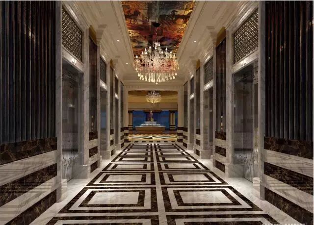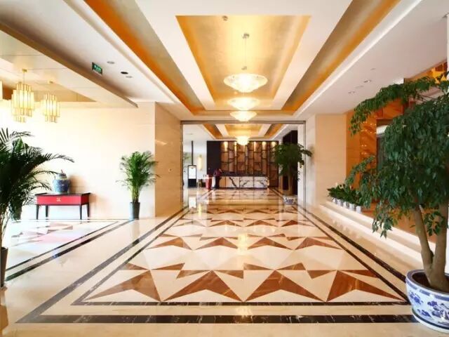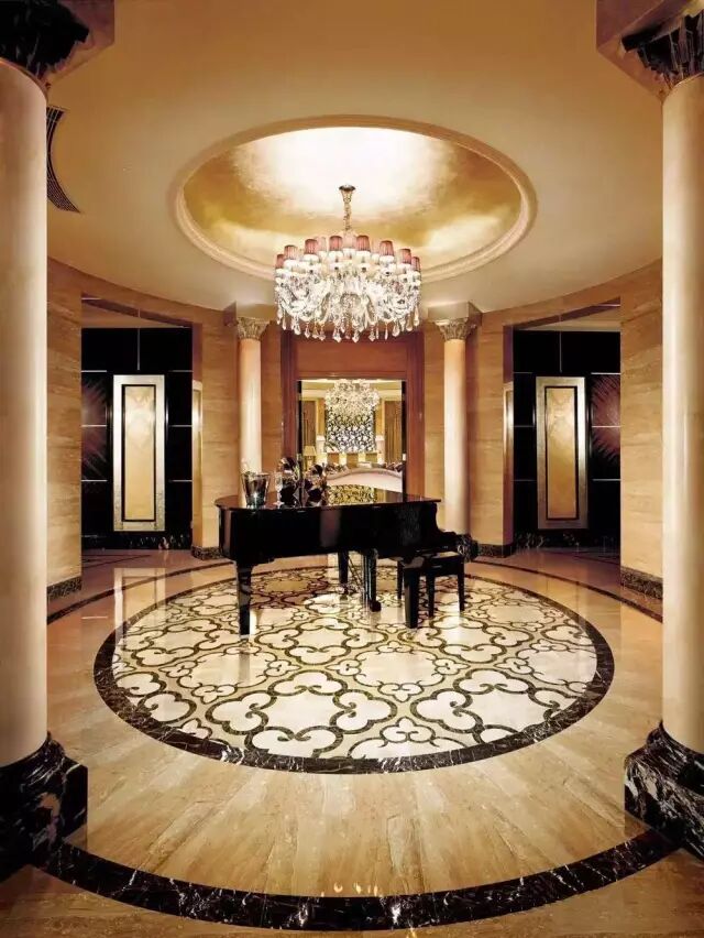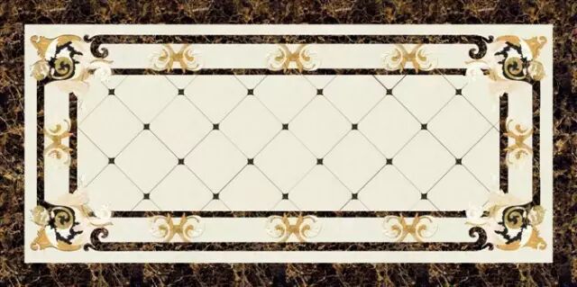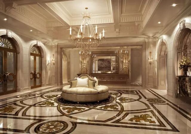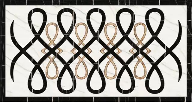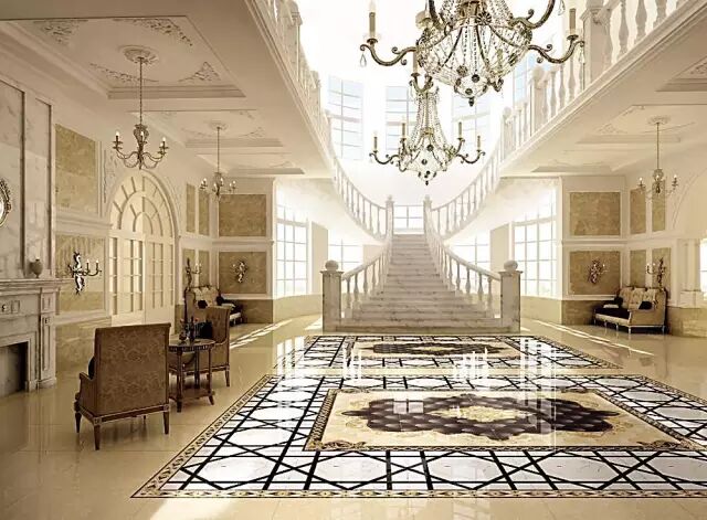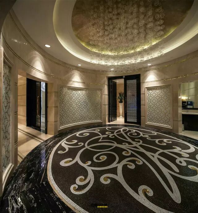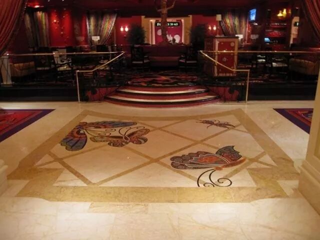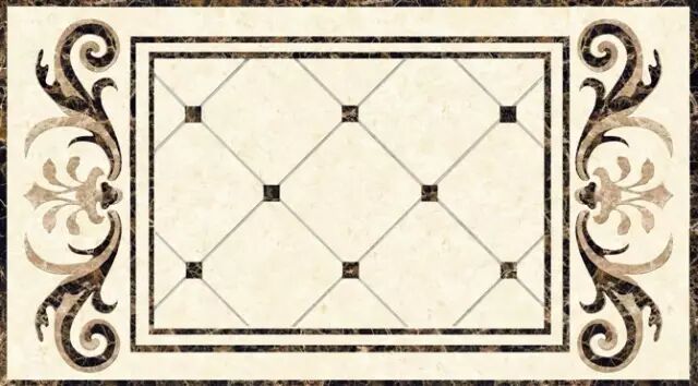 石材拼花在现代建筑中被广泛应用于地面、墙面、台面等装饰,以其石材的天然美(颜色、纹理,材质)加上人们的艺术构想“拼”出一幅幅精美的图案。水刀拼花工艺虽然是简单的圈层波纹,但是却是十几种石材的拼接而成。
