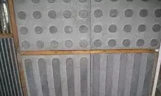 25、磨菇面板材:表面用凿子和锤子锤击成形如起伏山形的板材。
