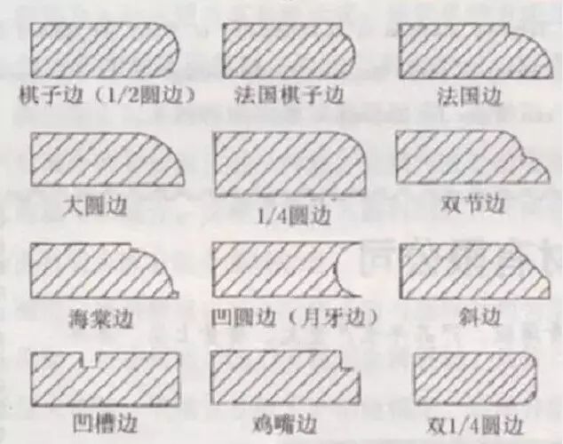 42、法国边:由一个小直边和1/4圆边相连组合而成。