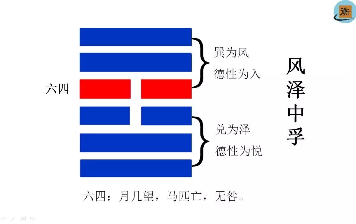 三、《中孚》卦之六四爻辞:“月几望,马匹亡,无咎”。(月亮就要圆满,母马失去了匹配,没有咎害。)