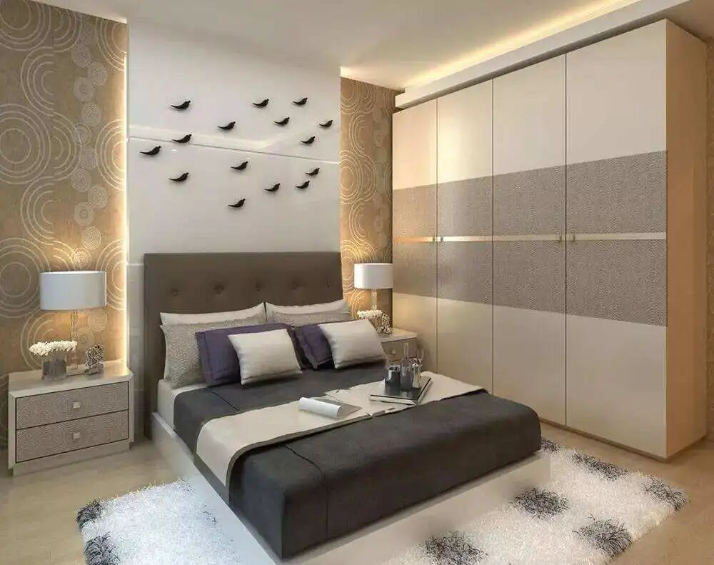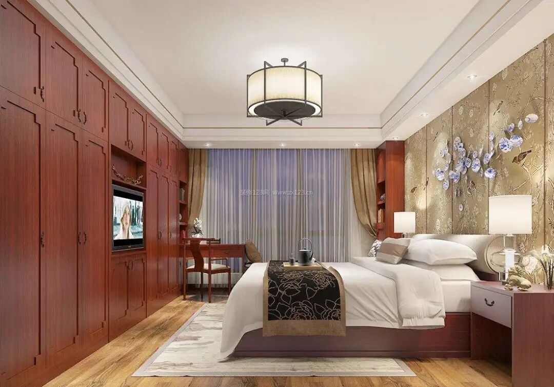 卧室衣柜摆放风水中一般衣柜宜摆放在床的左边,契合青龙位的阳气,高于右手边的白虎位的梳妆台,可以维持旺盛的阳气,让你财运亨通。