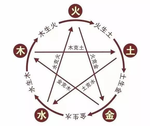 五行的相互关系,最重要的是相生和相克。相生,指它们可以依照一定的顺序相互生成。生成是循环不断的。相克,指它们之间依照另一顺序相互尅制。克与被克,也是循环不已的,每一克制者,在另一场合便是被克者。其相生为: