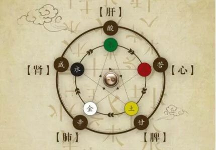 如果将五行依木火土金水的次序排列,那么邻位是相生的关系,隔位是相克的关系。阴阳五行是相互联结的体系。阴阳与五行之间的关系,前面介绍《太极图》时已经谈到过。太极生阴阳,阴阳变化交合,产生五行。对这一过程,《云笈七签》卷九十三《阴阳五行论》作了个更为详细的阐述。该文的作者这样说:“阴阳从“少”到老分化生成五行。少阳生成木,老阳生成火,少阴生成金,老阴生成水。参合相和谐,成为夫妇。”这里没有说到土,因为土是不拘于一处的,它和合其它四行,所以参合相和谐(参而和之),便是土。阴阳生五行,五行又各分为阴阳,比如同样是火,在人为神,神有阴神与阳神之分,也就是分为阴火和阳火,土为戊己,在人为意识,但意有正识和杂念之分,正识即元神,为戊,为雄(阳)土,杂念为雌(阴)土,必须清除,所以有“炼己”的环节。