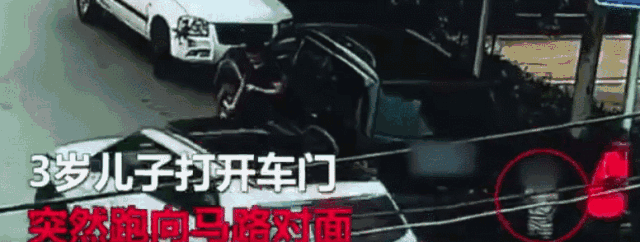 一个爸爸从越野车下来后一直低头玩手机,他3岁儿子自己打开车门,跑向了马路对面。
