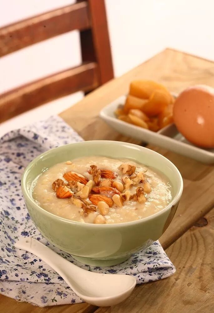 正在长身体的青少年更需要优质蛋白和钙质,这个时候可以在粥里添加一些坚果,不但能补充营养,还能让粥更加美味。