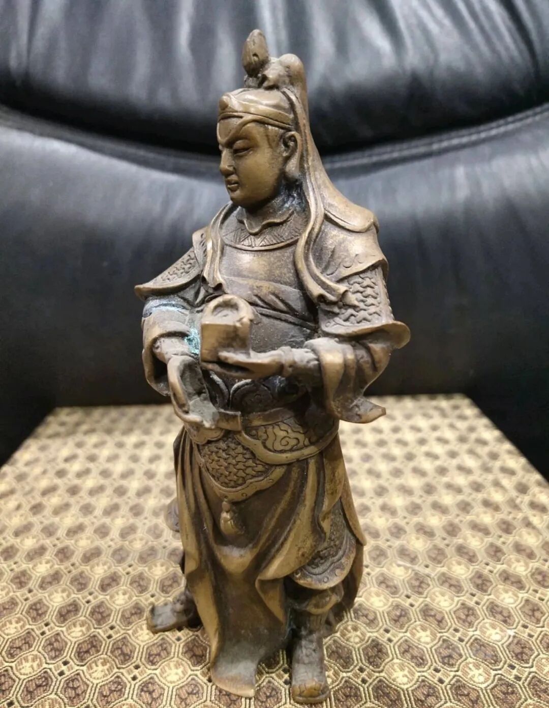 4.关圣帝君有单人独立手持大关刀像,亦有坐着看“春秋经”一像,亦有一种是关平周仓侍奉在侧的一种。以挡煞气而言,手持大关刀,直立而视或有关平周仓侍奉在侧的神像较为强力。