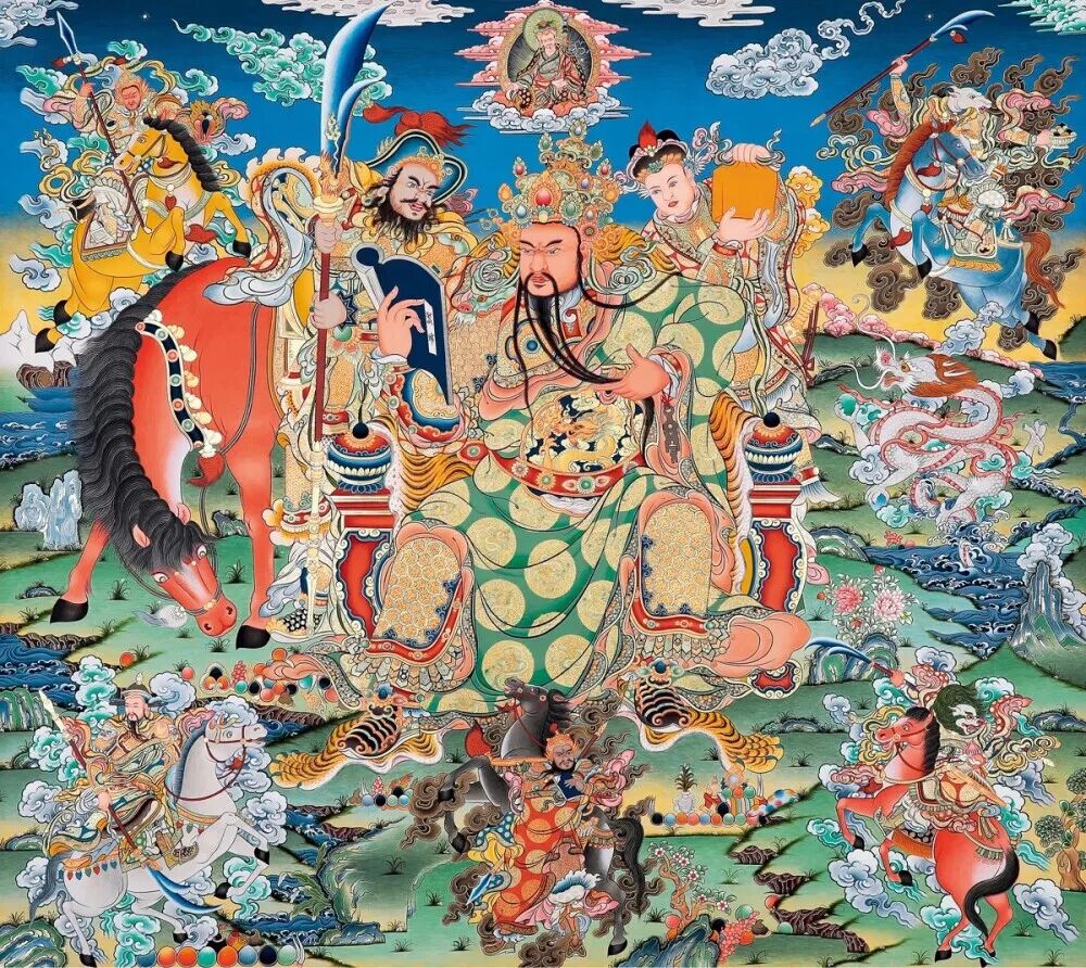 传说关云长的英灵升天后,玉皇大帝赐给他掌管天地的官职。在南天庭任职期间,关云长不忘关心人民疾苦,时常下凡间访查。看到世间光景不佳,便呼风唤雨,管保它风调雨顺,国泰民安。由此以来,各地大事兴建关帝庙,建庙规格都赶上了尊崇孔夫子的文庙了。关帝庙里香火旺盛,引起了南海恶龙的嫉妒。