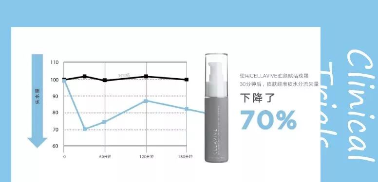 使用CELLAVIVE驻颜赋活晚霜30分钟后,皮肤经表皮水分流失量下降了70%,会在夜间持续给予肌肤滋养保湿,一觉醒来肌肤饱满紧致。