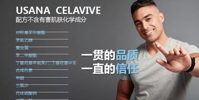 Celavive继承了USANA产品的一贯品质基因,配方中不含有害肌肤的化学成分,安全、天然,高品质,会赢得一直的信任。