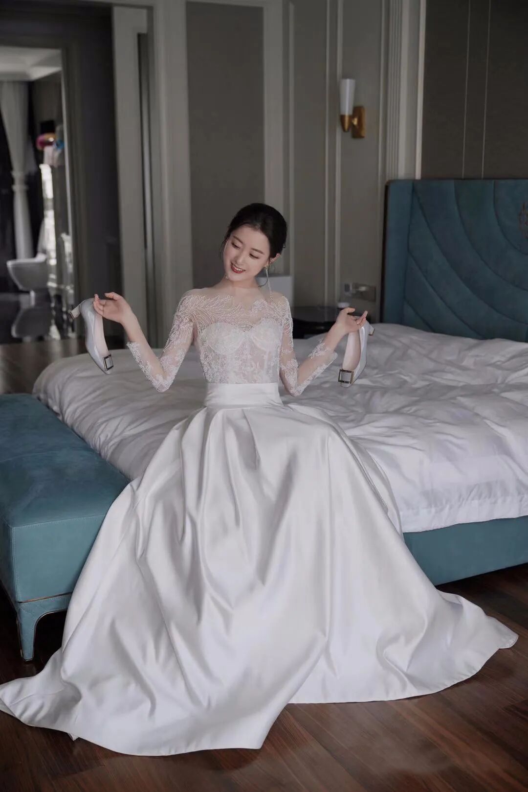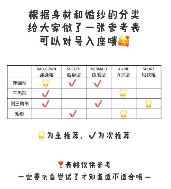 选择齐地修身款,尽量不选拖尾或蓬蓬裙,因为敬酒会非常不方便