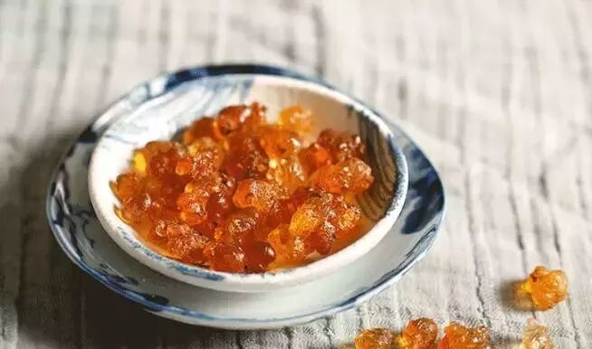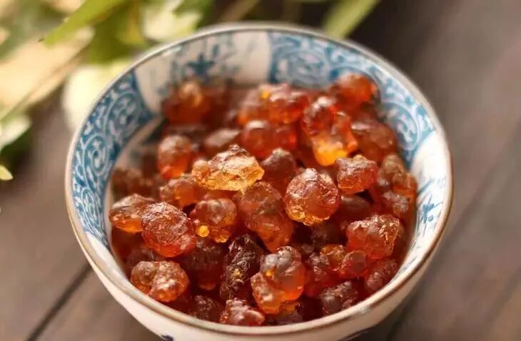 桃胶,还有个很有诗意的名字——桃花泪。是桃树皮中分泌出来的树脂,通过太阳晒蒸发,形成固体,干的桃胶呈结晶石状,形似琥珀。