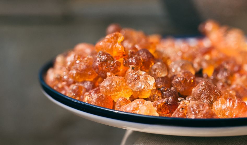 桃胶是一种浅黄色透明的固体天然树脂,于夏秋采收,其成分与阿拉伯树胶大致相同。性味甘苦,平,无毒,主治石淋,血淋,痢疾。
