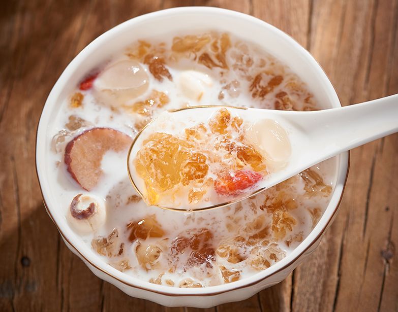 材料:桃胶,冰糖,纯牛奶,蛋白