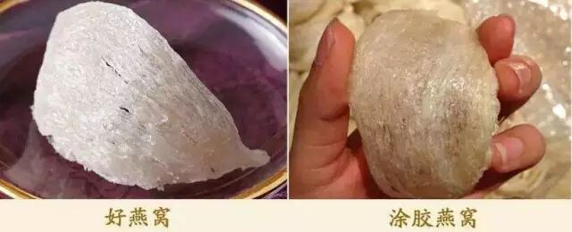 天然燕窝中含有蛋白质,燃烧时会有类似头发烧焦的味道。假燕窝或刷胶的燕窝,燃烧时会有类似塑料品燃烧的刺鼻味道,近年来,燕窝市场正规后,假燕窝现象基本没有了。