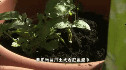 种在窗台或者花园里的花盆里的土豆,5月培土时,要把嫩苗用土或者肥盖起来,这样块茎会更容易生长。