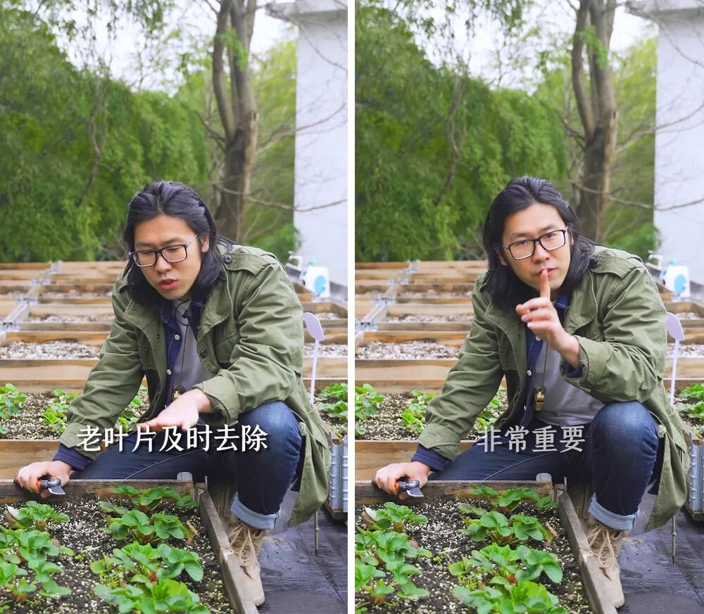 在温室种植时,草莓讲究“三叶一芯”。即一个生长点的四周保留三个健壮的大叶片。