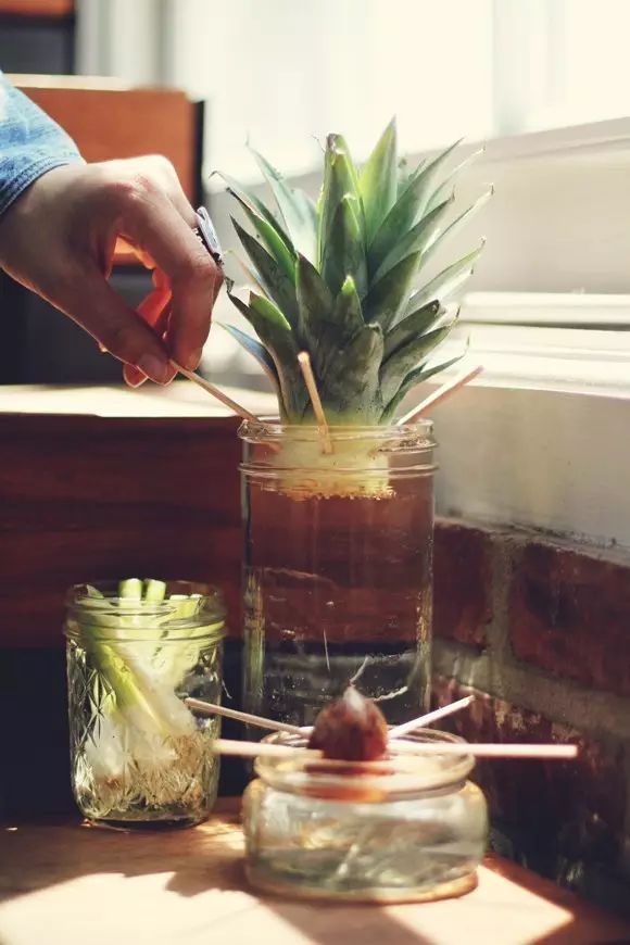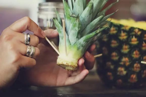 只要留下菠萝头,丢进水瓶里就能养活。