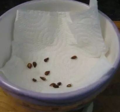 然后将种子铺在一张纸巾上,