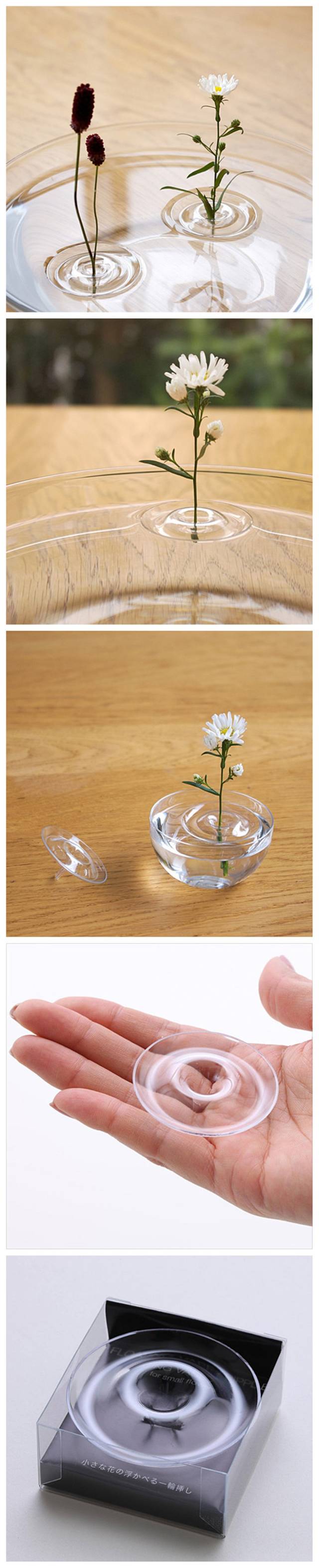 花瓶,大概是每家每户都会有的一件小玩意,它们使用简单,但是要想获得真正不错的装饰效果,却又需要一些有底蕴的学问——否则,这世间就不会出现一种叫“插花”的艺术了。 但毕竟不是每个人都有那时间和闲情,所以,对习惯和被习惯着快节奏的现代人而言,这款浮动波纹花插(Floating Vase RIPPLE),也许更值得我们考虑,因为,它只为一枝花而设计:采用塑料材质,整个造型就像是一圈水波纹,可以轻松地浮在水上,中间有小孔,刚好可以插入一枝花,清幽地在水面绽放,孤绝,淡雅,最适合一些渴望安静的小心思。