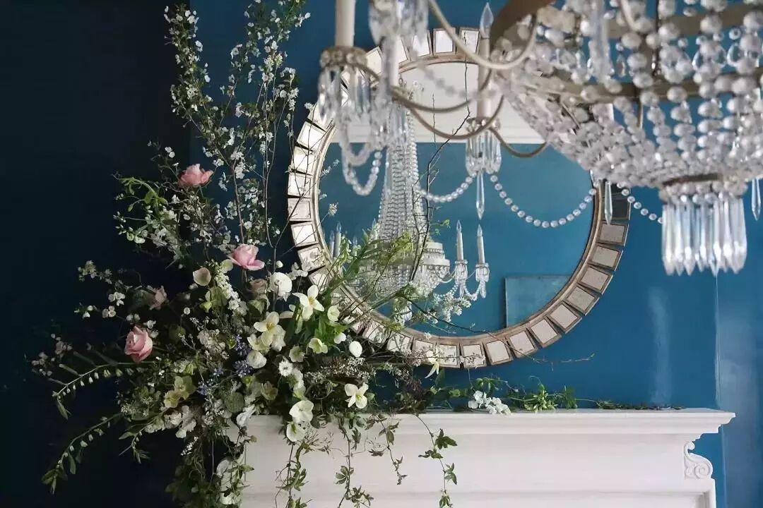 如果在此处选择悬挂式的花艺作品挂在墙壁上