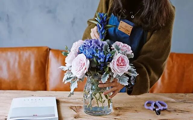 这种自如感来自对花材的熟悉,以及在一次次插花实战中得出的经验,最终成了一种手感。