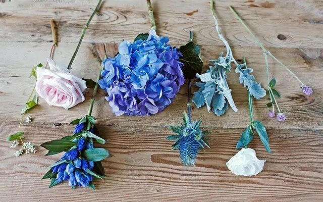 按照花材种类,分门别类摆放,这样心里会清楚大致哪些花材可以供自己使用,区分主次花材、花叶,在心中排出出场顺序。