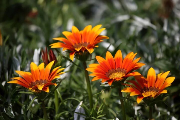 勋章菊(拉丁学名:Gazania rigens Moench):菊科,勋章菊属多年生草本植物,因其形状似勋章而得名。具根茎。叶丛生,披针形或倒卵状披针形,全缘或有浅羽裂,叶背密被白绵毛。舌状花白、黄、橙红色有光泽。喜阳光,喜生长于较凉爽的地方,耐旱,耐贫瘠土壤;半耐寒,因此在冬季较温和的地区可顺利越冬。