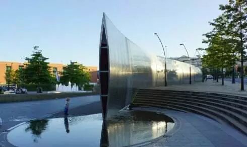 谢菲尔德是欧洲钢都及不锈钢发明地的城市历史和文化。而声景其主要元素便是不锈钢,并把它打造成连篇“刀刃”,“刀刃”在阻隔交通噪声的同时,面向广场一侧有清水顺流而下,用潺潺水声进一步掩盖掉噪声。除了水幕墙,广场内还喷泉以及叠水,令水声多种多样。