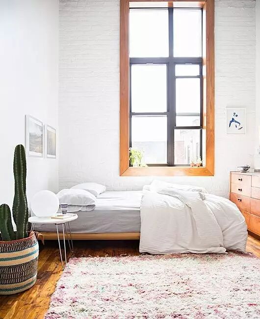 大面积的白墙中点缀一两面红砖