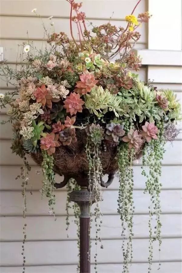 当然,如果想要设计感更为丰富点的话,可以选择一些更为别致的盆器放置多肉植物,如下图所示