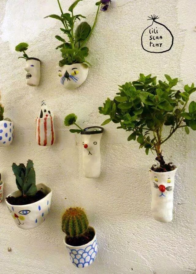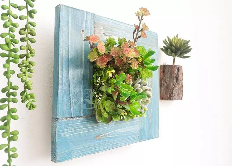 倾斜悬挂式就是在墙面上做好龙骨,然后在骨架上做一些花盆形式的造型,最后将多肉植物放在设计好的花盆中。花盆最好与墙面呈一定的角度,这样会使整个垂直绿化看起来更加活泼、灵动。倾斜悬挂式可用于室内、也可用于阳台等地方。