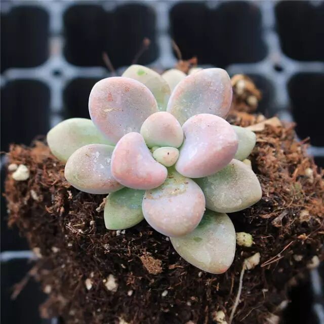 胧月就是咱们俗称的宝石花,这么熟悉的名字入耳,想必你们已经知道这是一款比较好养的多肉了吧,不仅好养而且常见,价格自然不高。最最重要的是容易繁殖,叶片掉落即生新植株,一不留神就是一大盆。