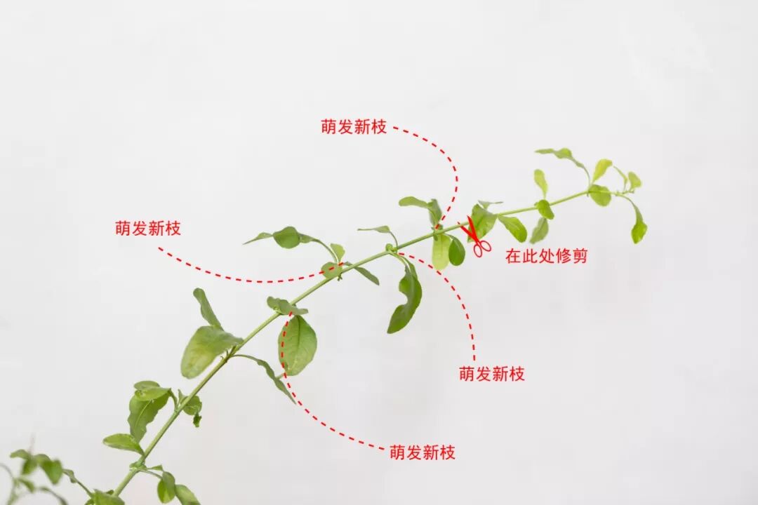 靠近基部修剪枝条,新枝萌发位置较低↑