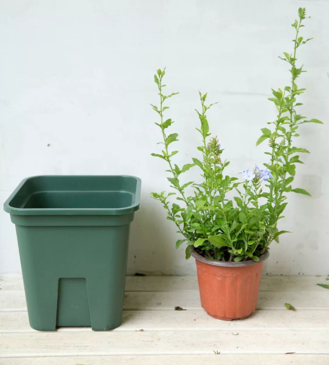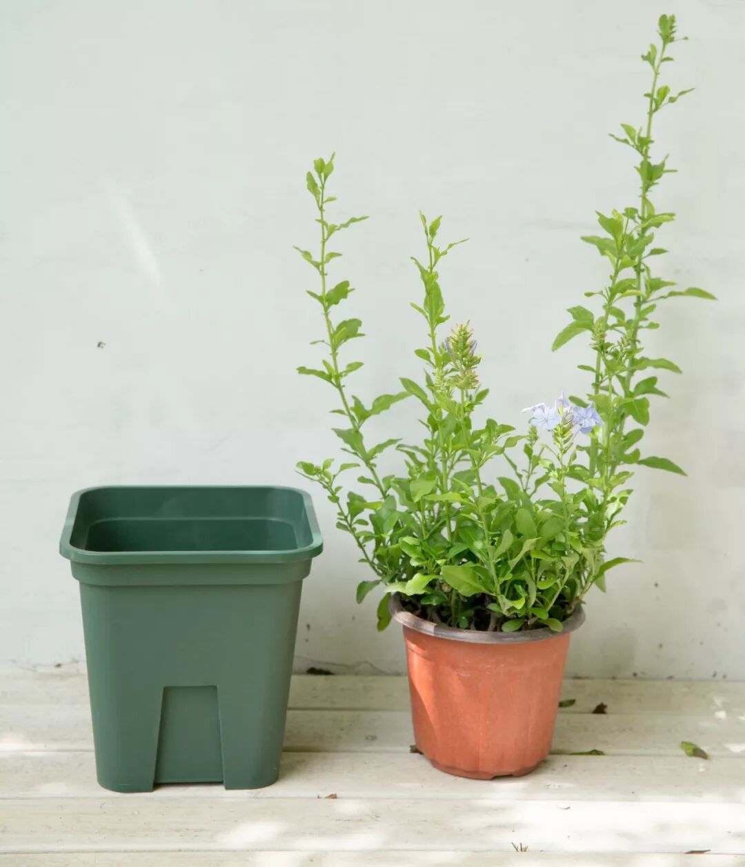 比原盆稍大的花盆,蓝雪花很快就能长满,需再次换盆↑