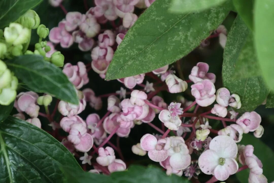 选对绣球,要达到不断爆花效果的绣球,新老枝开花是必须的,新枝指的是当年春天绣球开始长新叶冒出的,老枝则是去年留下的木质茎干。