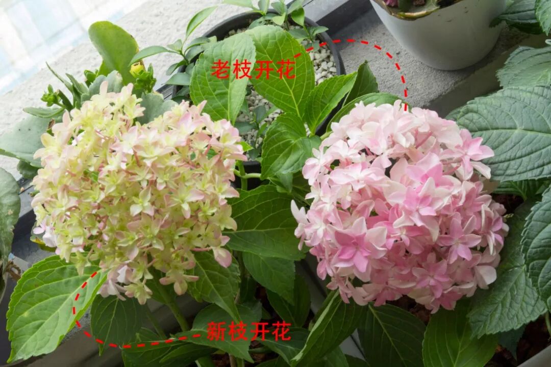 不过这些新枝能开花的绣球,相比“无尽夏”大多只有春季从植株基部发出的新枝能开花,而夏秋从茎秆中部萌发的新枝几乎不能开花,因此除了日常合理的养护外,还需要一定的养护方法,将花期延伸到夏季。