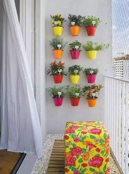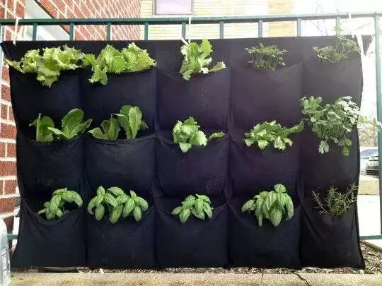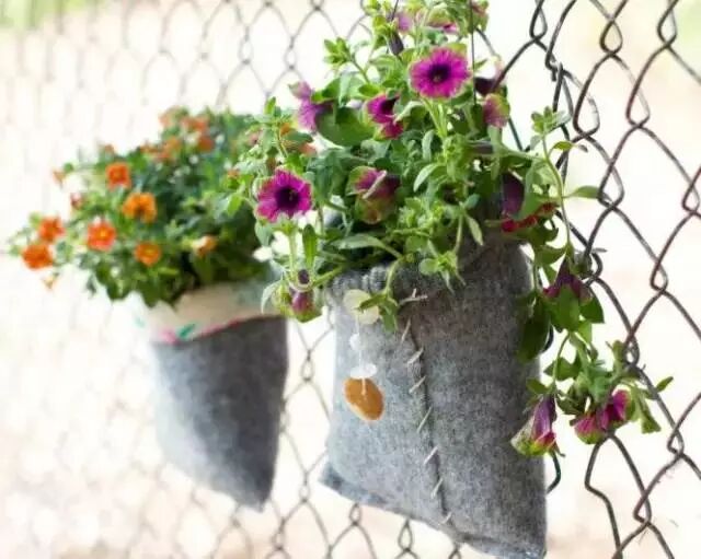 一些什么麻布袋呀、环保袋呀之类的,种上花花草草,把它们一个一个像灯笼那样挂起来。这样,你可以连花盆也不需要了。