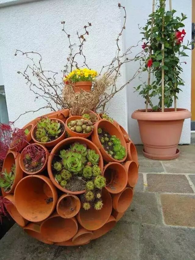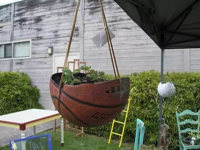 把多余剩余的水沟管道拿出来,或者到附近的一些废品店收购一些废弃的管道,砸开两半,挂起来种花吧。