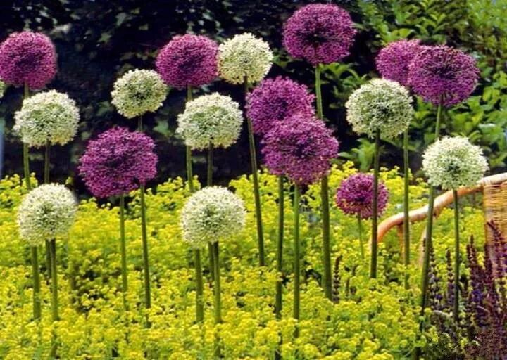 将球根植物与其他植物巧妙搭配,能创造出令人惊叹的效果。比如让我印象最深刻的就是大花葱与墨西哥羽毛草搭配的图,微风拂过时那么梦幻。植物是有不同质感的,通过不同质感的搭配有时就会有绝妙的效果。这就需要每一个种植设计者的长期积累和功力了。