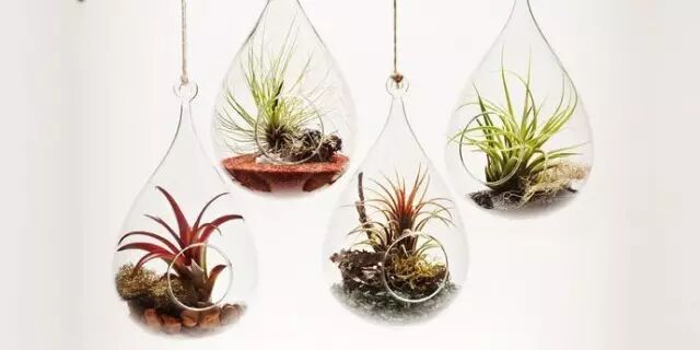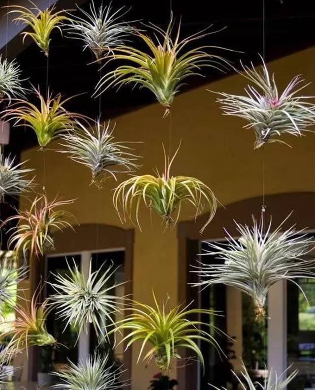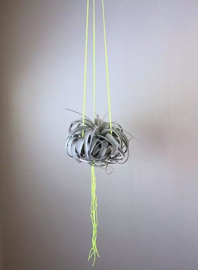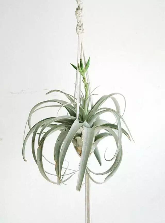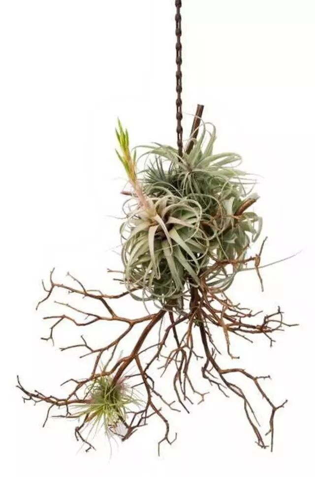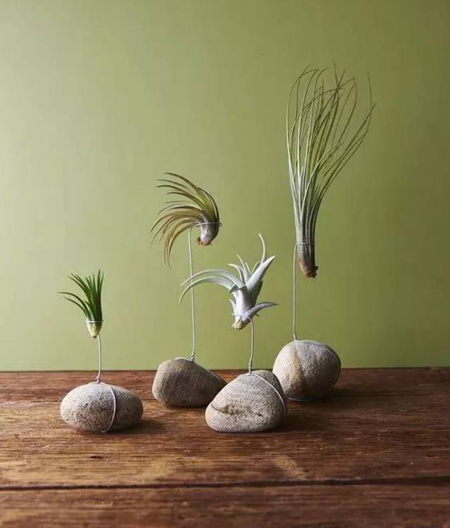 既然都不需要土壤了,那么直接用一根绳子挂起来好了,简单方便易操作。动手能力强的小伙伴,还可以在绳子上多做一些小文章,比如编织一串可爱的彩带,或者在绳索末端的用枯枝装饰一下,让它看起来更加充满自然之感。