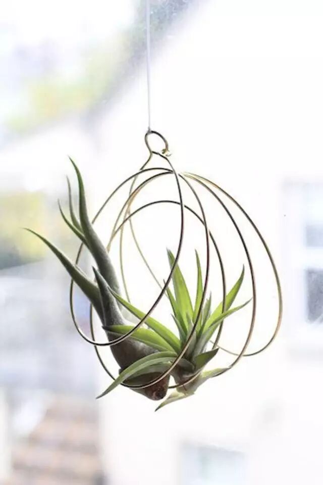 嫌绳子悬挂的没有创意,不如用铁丝给空气凤梨做一个充满设计感的秋千,不管你挂在什么地方,都能让你的逼格瞬间提升!