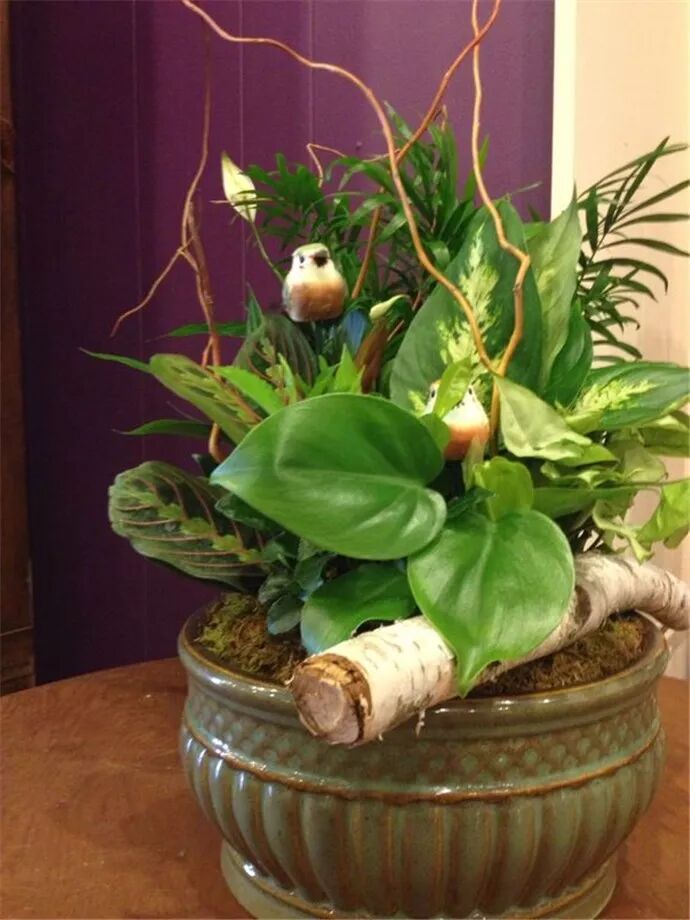在做组合盆栽的时候,要注意将生活习性相近的植物组合到一起,比如耐旱的多肉可以和仙人掌类的搭配在一起,喜阴的室内植物如竹芋类、蕨类等可以搭配在一起,这样便于统一养护管理。