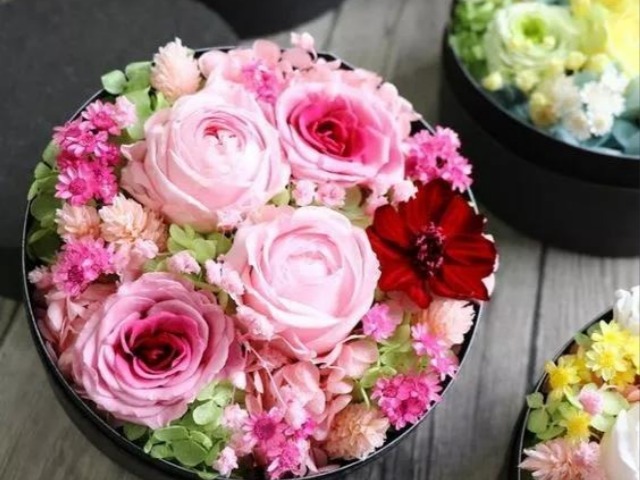 花盒的一个优点是利于保护鲜花的造型,同时铺满花泥可以延长鲜花的生命力。近些年除了早期的传统花盒,又有许多新型花盒被花艺师们和商家开发出来,吸引顾客的眼球。
